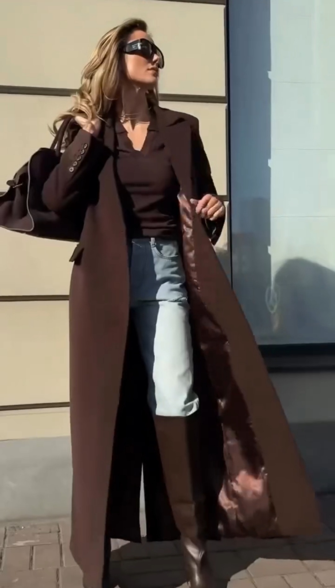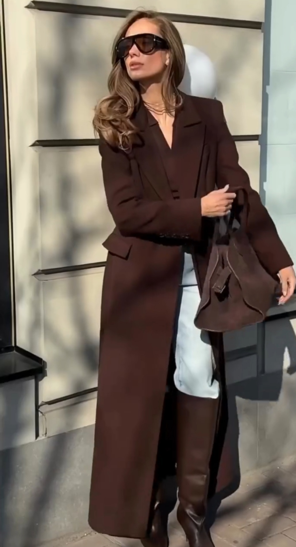 پالتو زنانه مزونی موکا در جنس فوتر کوبیده دورو اورجینال و آسترکشی کامل در رنگ قهوهای شیک و جذاب