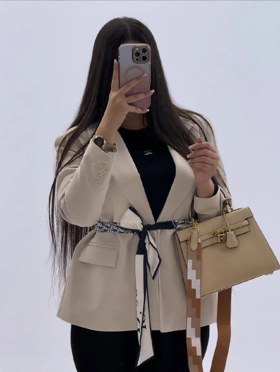 کت کاملا لایهکشی شده و گاندوزی شده ، کمربند طبق عکس نیست و از جنس خود کت میباشد