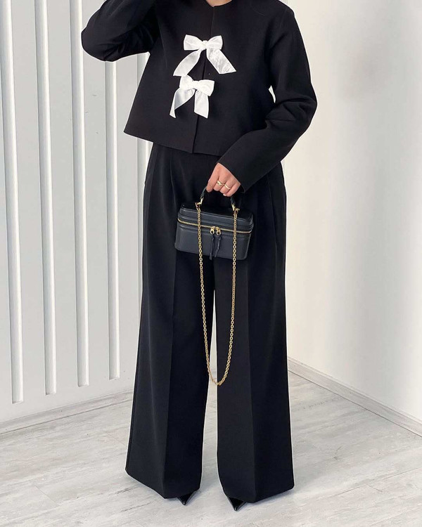 ست کت شلوار زنانه شیک مزونی مدل پاپیون 🎀