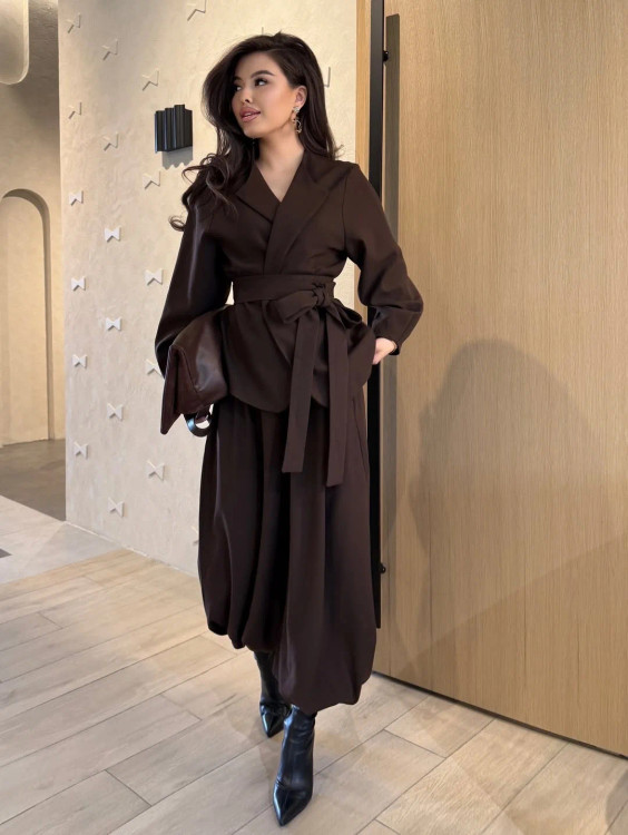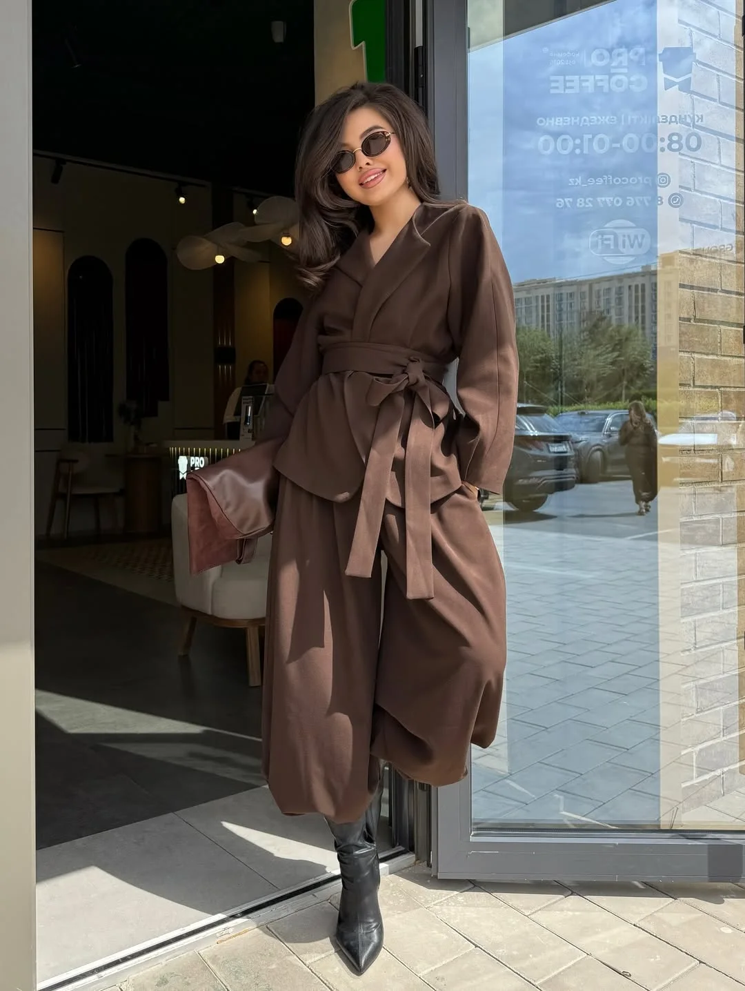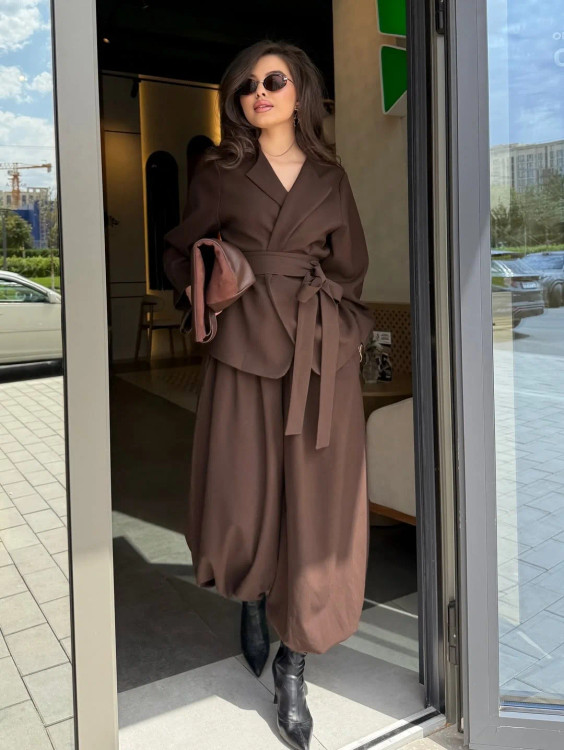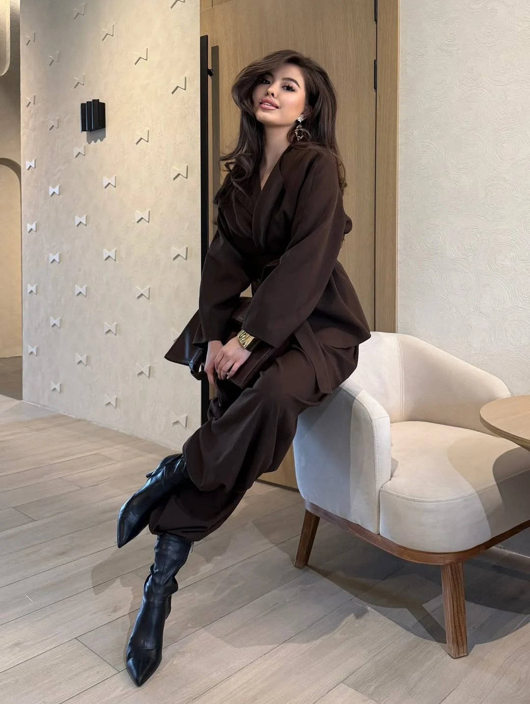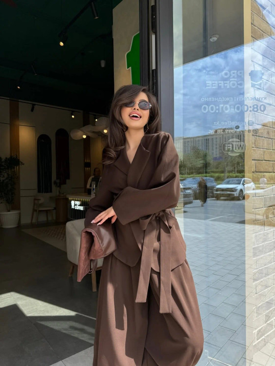 ست مزونی جذابمون در رنگ موکا جنس: کرپ هایتوییست(نخ توئیت چهارفصل) در رنگهای دیگه هم قابل سفارشه. قد کت ۶۵_۷۰ قد شلوار ۱۰۷ (اندازهها قابل تغییر).