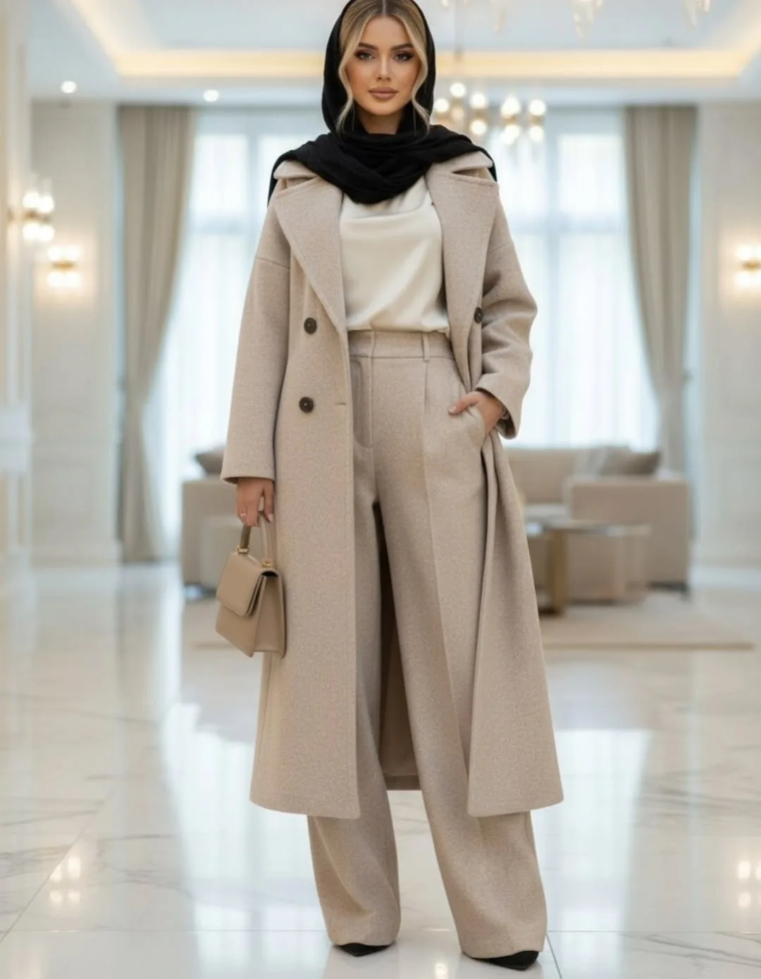 ست پالتو و شلوار زنانه مزونی در جنس فوتر کش ترک🇹🇷 مدل طناز