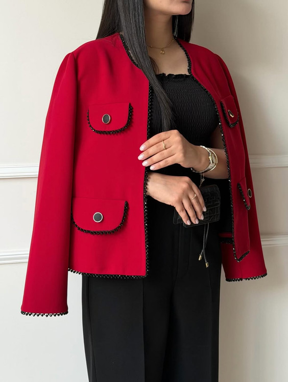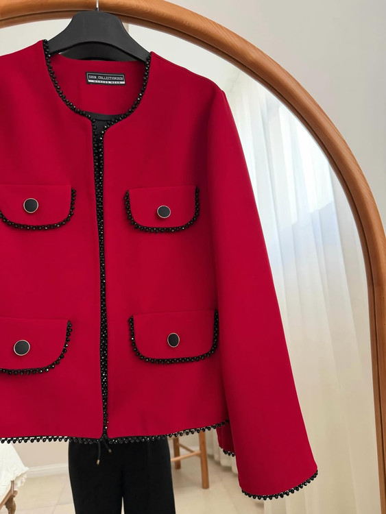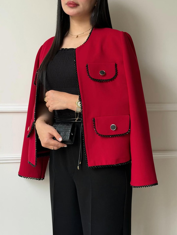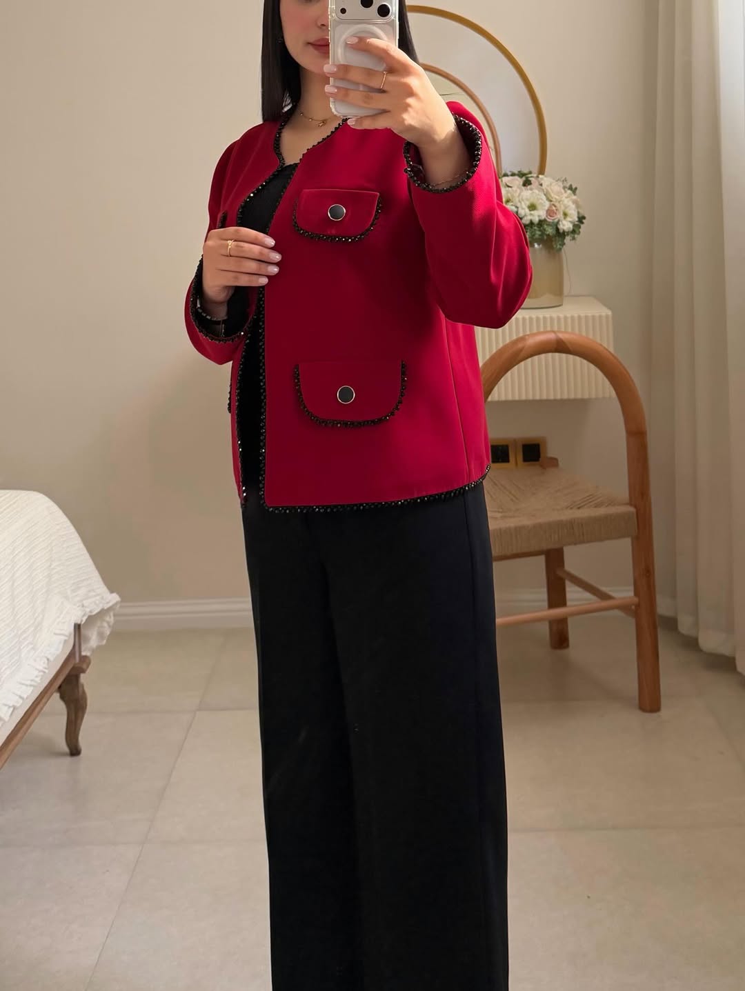 کت زنانه مجلسی ،در جنس کرپ هایتوییست و کاملا لمینت شده با نوار مغزی کریستال💎