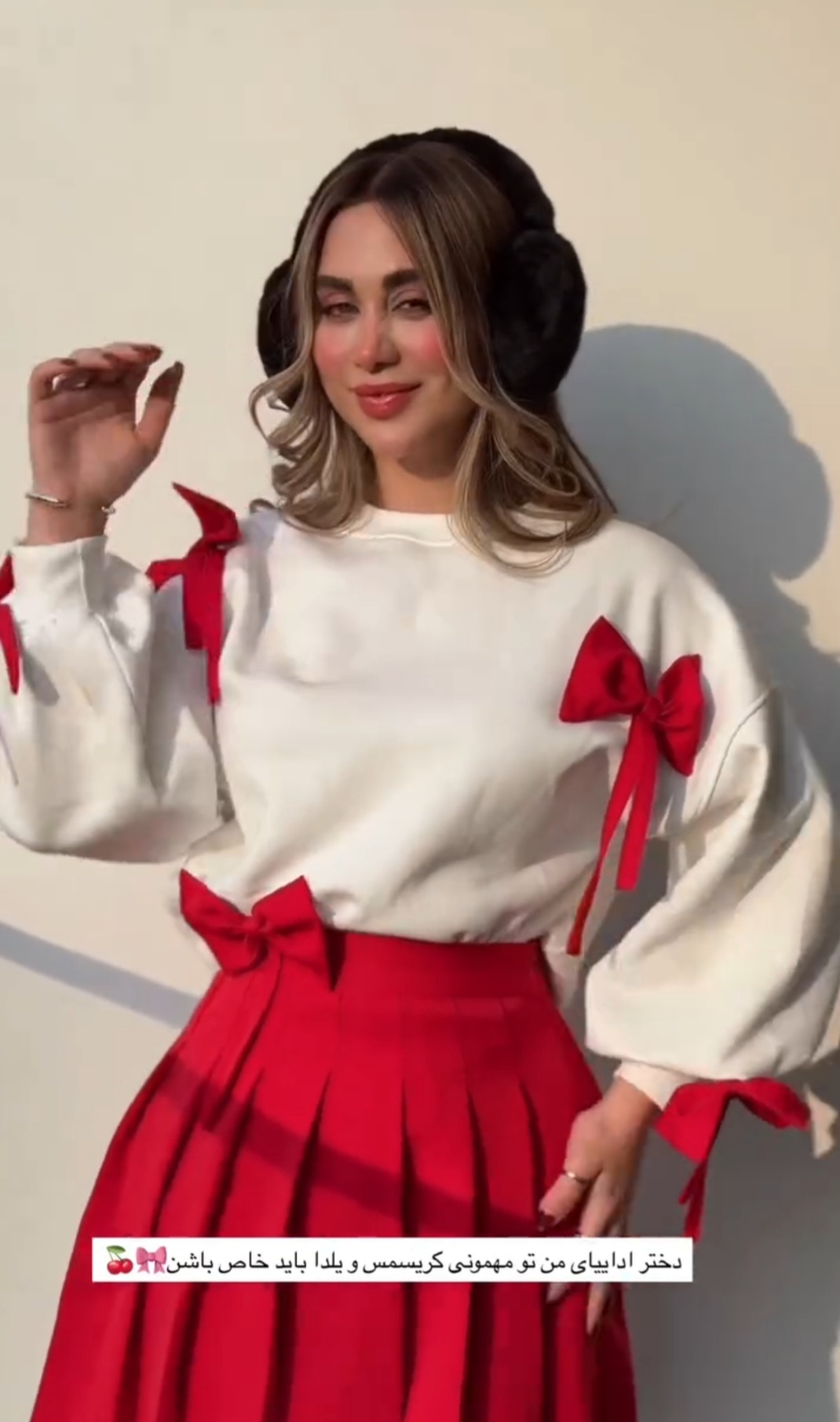 ست شومیز و دامن پاپیونی با آستینهای پفی و جنس دورس نخ پنبه باکیفیت مناسب پاییز و زمستون مدل پاپیون🎀